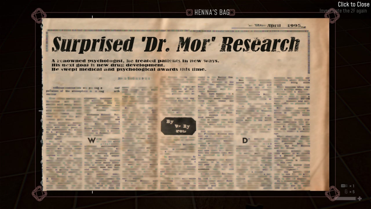 Ваша главная задача — вернуть утраченные воспоминания. Фрагменты будут всплывать по мере продвижения по сюжету. Чтобы не свихнуться на пути к выходу, собирайте таблетки и батарейки для фонарика. Он поможет вам в мрачной клинике и отпугнет местных недоброжелателей. Кроме того, постарайтесь отыскать тайную комнату, укрываясь от преследующего вас существа.