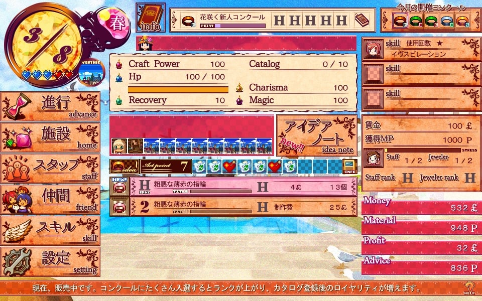 Witch Ring Meister — казуальная экономическая стратегия и бизнес-симулятор с анимешной эстетикой. Пользователи проводят время за изучением различных меню и схем, а также наблюдают за сценками с диалогами и крупными спрайтами персонажей, выполненными в стиле визуальных новелл.