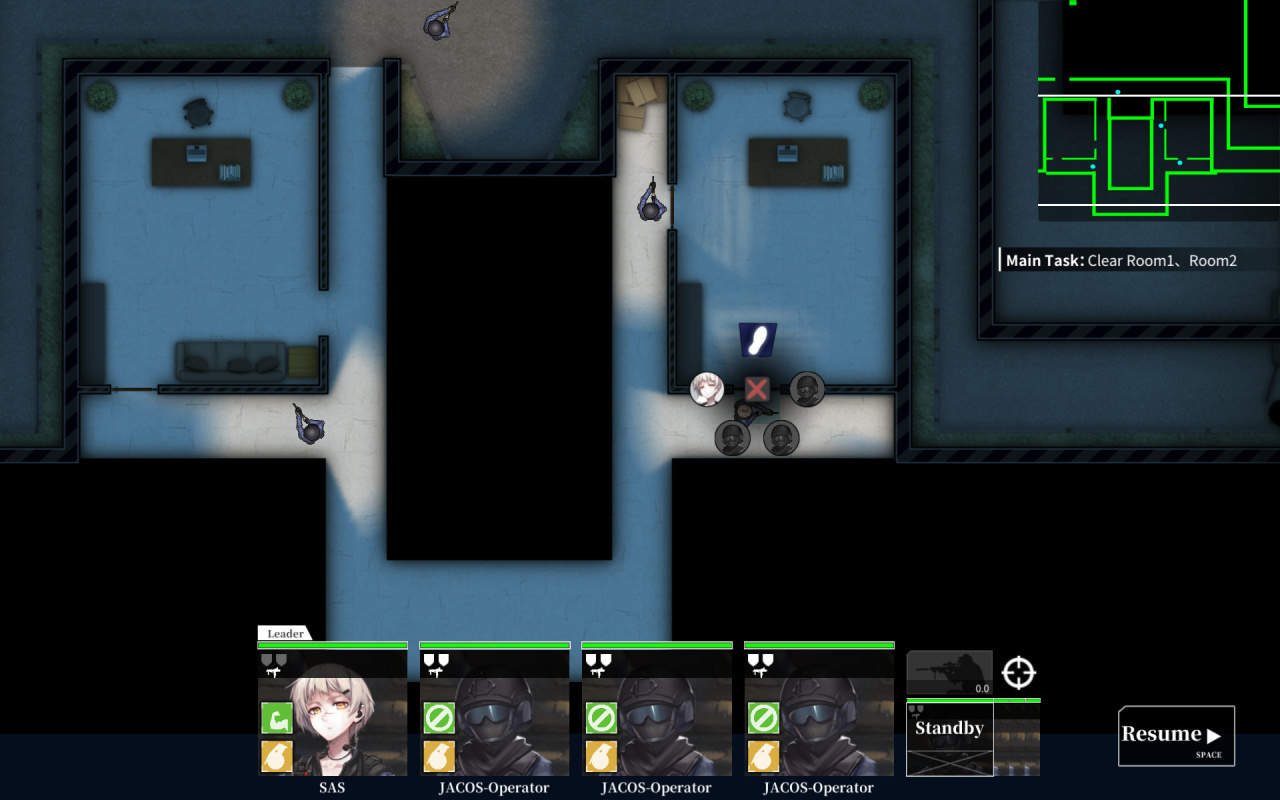 Ключевая механика — создание индивидуальных маршрутов для каждого члена группы. Достаточно провести линию курсором, чтобы боец добрался до цели. На первых уровнях это не критично, но с течением времени тактика приобретает значение. При входе в помещение нужно грамотно расставить юнитов, чтобы они прикрывали друг друга. Для внезапного штурма подойдут свето-шумовые устройства, а для устранения противников — боевые гранаты.