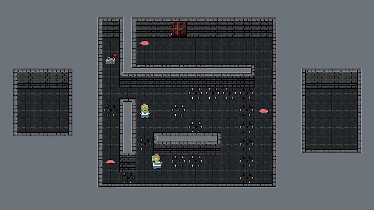 Проект включает 30 уровней. В каждом из них скрыта дверь, ведущая к выходу. Чтобы добраться до неё, необходимо избегать ловушек и собирать бонусы в виде мозгов. Здесь и проявляется уникальная механика, усложняющая задачу. Мертвецы движутся синхронно: при команде перемещения вправо оба юнита начинают двигаться вместе, и разделить их невозможно. Это требует тщательного планирования действий, ведь попадание одного из зомби на шипы приведет к началу миссии с нуля. Иногда, чтобы выбраться из замкнутого пространства, требуется передвинуть блоки. HELPLESS ZOMBIES предлагает увлекательные испытания и заставляет мыслить креативно.