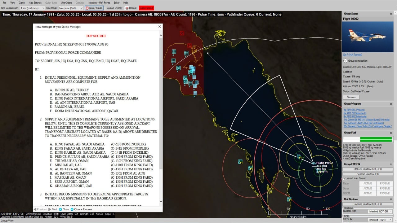 После загрузки перед геймером раскрывается карта Земли с четким отображением государственных границ, техники, её количества и статуса, а также сведений о текущих операциях. Управление последними осуществляется в отдельном окне, где можно оценить время, необходимое для подготовки и выполнения заданий. Пользователь сам выбирает, какую технику отправить в путь. Арсенал впечатляет: самолеты-невидимки, боевые вертолеты, бомбардировщики, самонаводящиеся боеголовки, авианосцы и множество других систем. Кликнув на иконку, можно проанализировать полученный урон и текущее состояние техники. В Command: Desert Storm можно сражаться как в одиночку, так и с друзьями, выбирая разные стороны конфликта.