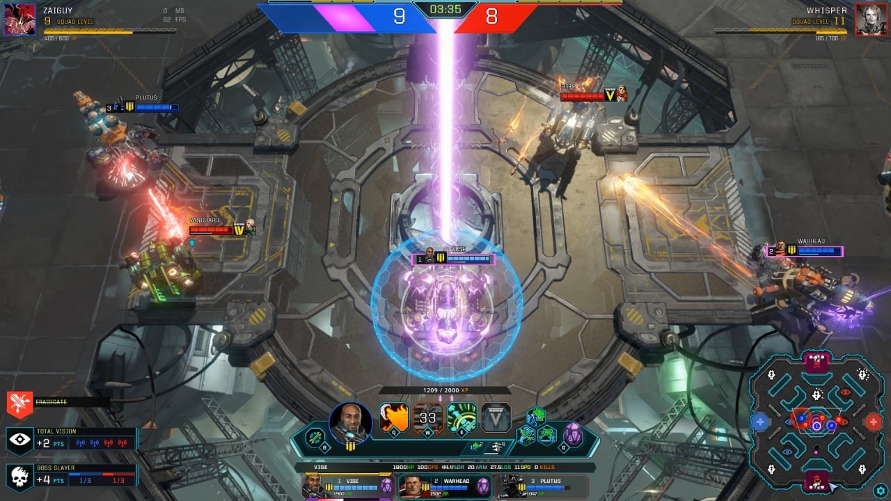 Помимо дуэлей, Dropzone предлагает возможность командных битв с участием 2-3 геймеров с каждой стороны. Игроки могут выбирать между быстрыми матчами, официальными и кастомными картами. Поединки в среднем длятся около 15 минут. Доступен режим наблюдателя, позволяющий следить за сражениями в реальном времени или просматривать повторы. Для победы необходимо заработать больше очков, чем оппонент, выполняя задания и сдавая ядер, выпадающие из убитых мобов. Линий с крипами и уничтожения вражеских баз здесь нет, но опыт получается общим для всего отряда. Геймеры могут атаковать солдат противника, мешая им достигать целей. Также присутствует PvE контент, включая кооперативную игру "Заражение" и одиночные сессии против ИИ.