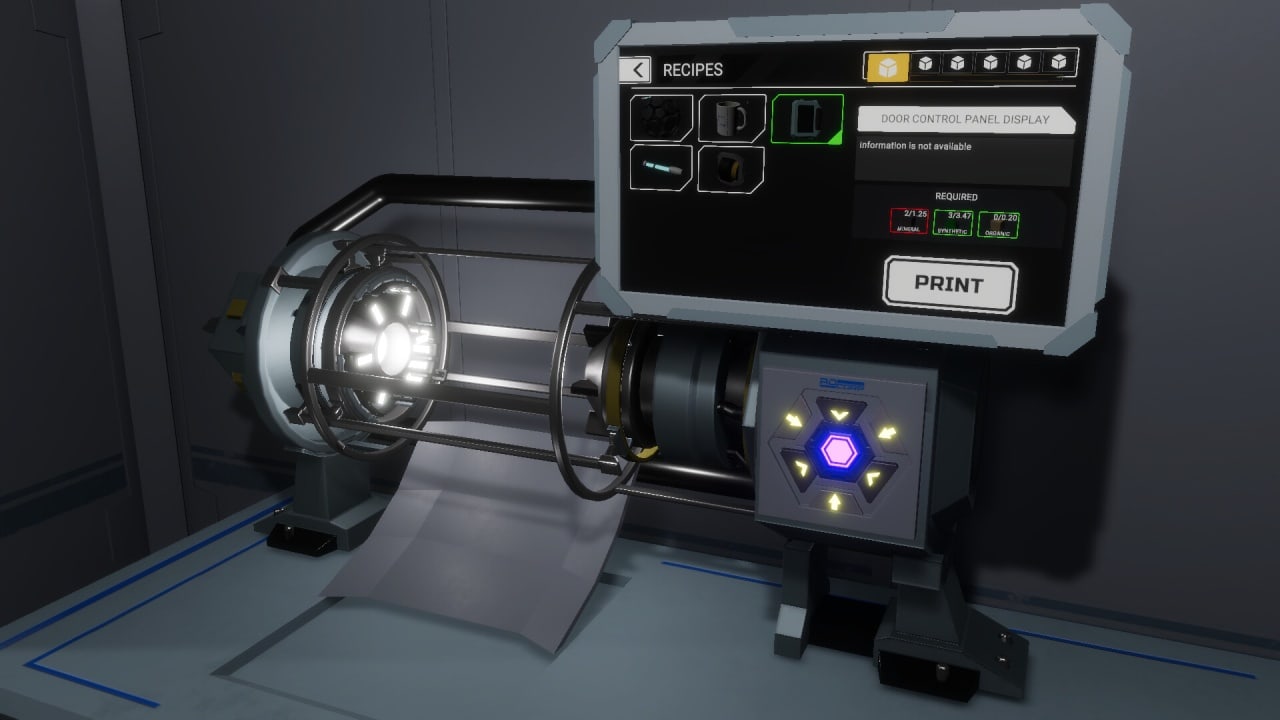 Используйте 3D-принтер для создания необходимых предметов. Протагонистка имеет переносной мини-инвентарь для хранения полезных вещей. Инструменты могут ломаться. Ремонтируйте поврежденные механизмы и заменяйте вышедшие из строя детали.