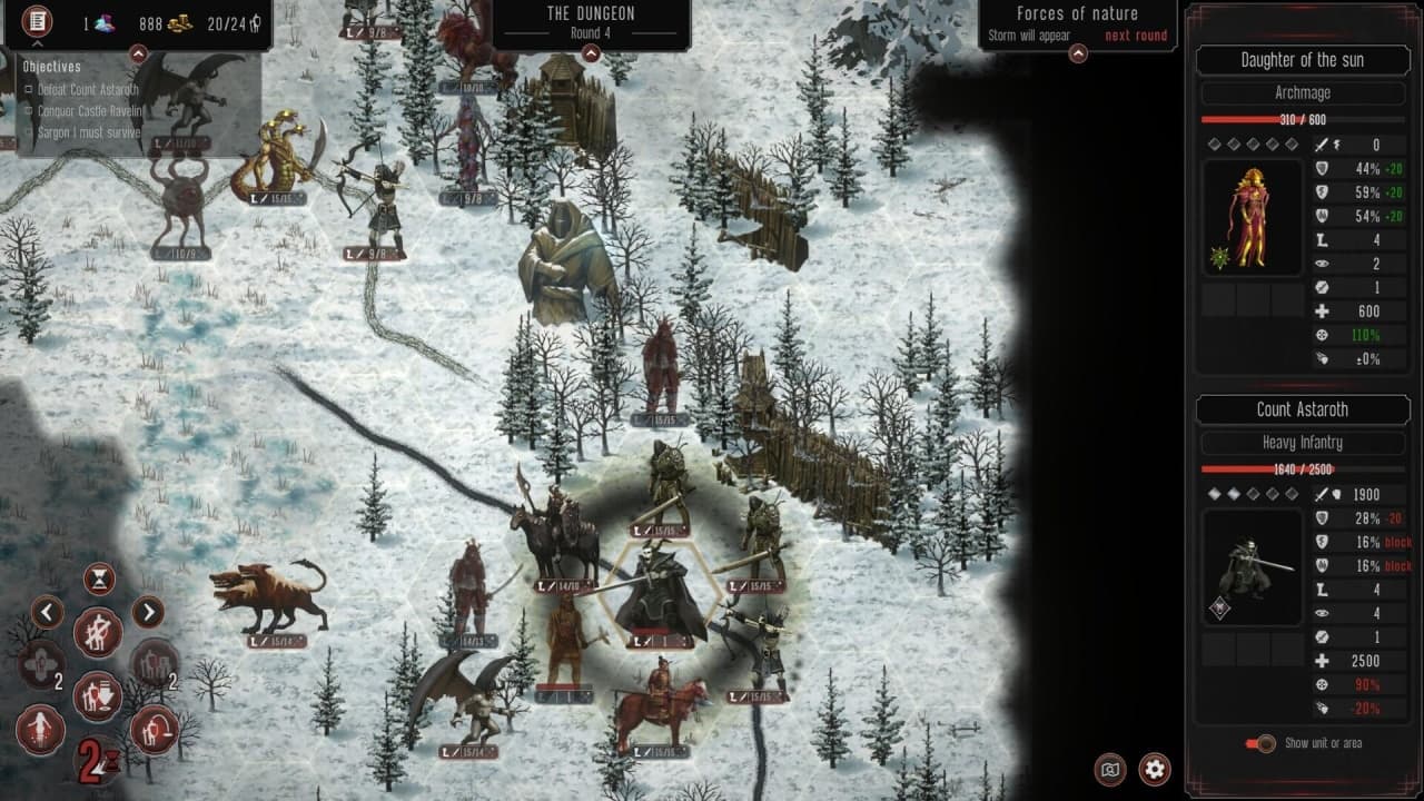 В игре присутствует динамическая смена погодных условий. Дожди, молнии, бури, метеориты — все это может стать как союзником, так и врагом. Все зависит от удачи и рандома. Игровой процесс черпает вдохновение из классики жанра, такой как Heroes of Might and Magic, XCOM и других.