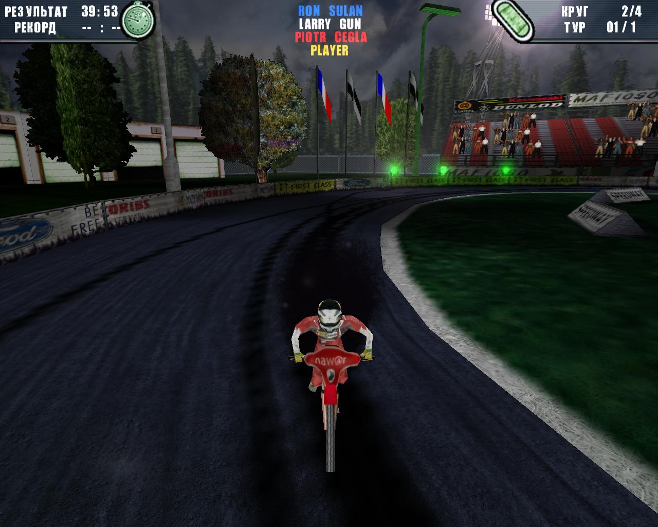 Крутой вираж — первая компьютерная видеоигра, посвящённая спидвею. В этом симуляторе пользователь становится профессиональным гонщиком, соревнуясь на стадионах и масштабных аренах за призовые места. В проекте представлено множество мотоциклов с уникальными характеристиками. Все они способны развивать высокие скорости и ловко маневрировать на трассе.