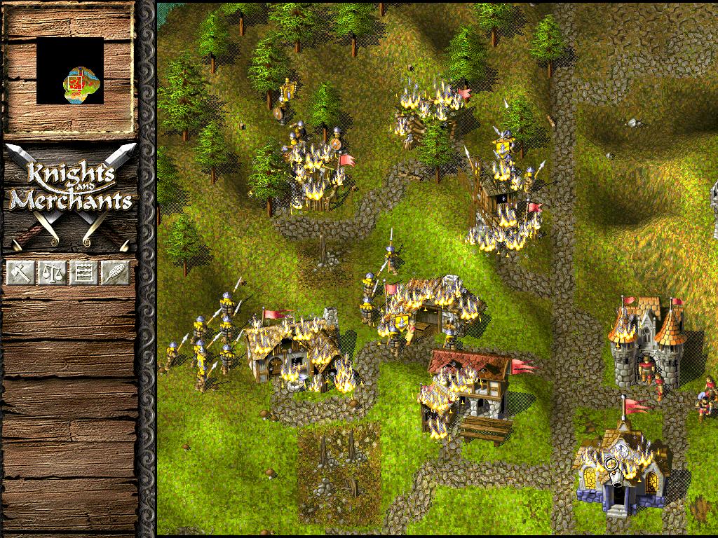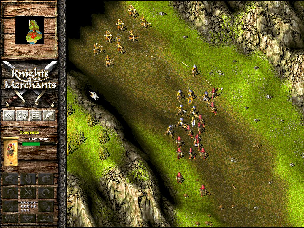 Рыцари и Купцы – стратегия в реальном времени с глубокой экономической моделью. Пользователь столкнется с множеством ресурсов, профессиями горожан, длинными производственными цепочками и косвенным управлением подопечными. Эта часть акцентирована на военных действиях, в отличие от предыдущих тайтлов, где акцент был на экономическом развитии.