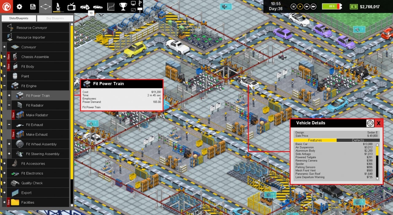 Конкуренты не дремлют. Они могут опередить вас с помощью новых технологий или следовать вашим шагам. Ваша задача — поддерживать высокий стандарт производства легковых автомобилей, приносить доход и совершенствовать все этапы работы. На фабрику будут поступать контракты, которые нужно оценивать: соглашайтесь на более выгодные или отказывайтесь от менее прибыльных. Постоянный поток автомобильных компонентов требует быстрой реакции и тщательного планирования производственных процессов.