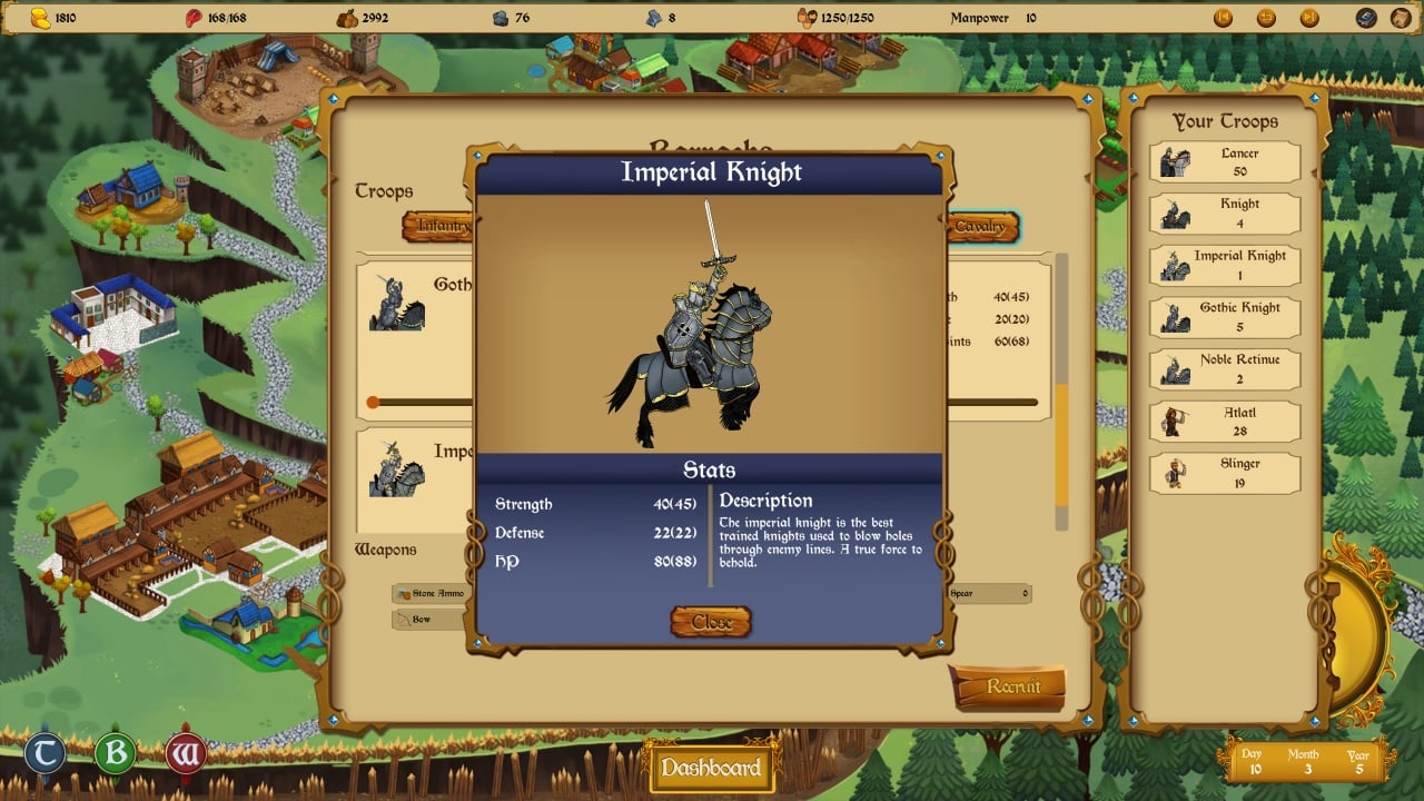 Способности короля напрямую влияют на эффективность государства во всех его аспектах. Пользователь будет контролировать торговлю, уровень счастья подданных, военные кампании, формировать армию и решать множество других задач. Если удастся наладить экономику, укрепить границы и расширить территорию, королевство может достичь величия. В противном случае оно рискует превратиться в руины. Множество правителей будут стремиться завоевать новый город изгнанного принца.Функции Conqueror 940 AD: