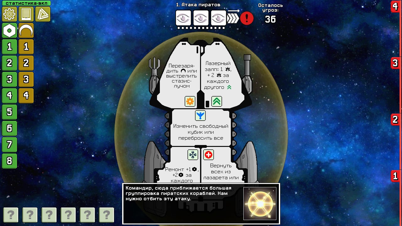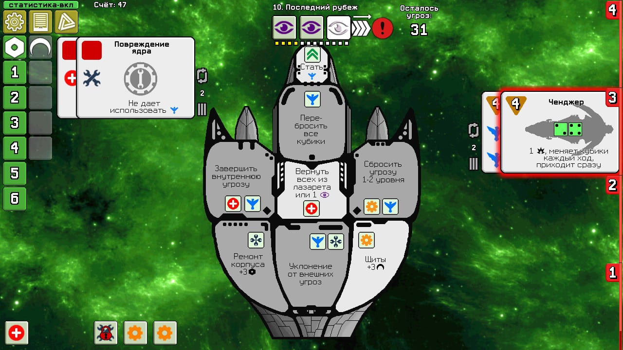 Пролетая через бескрайнее космос, судно сталкивается с непрекращающимися угрозами. Командиру предстоит противостоять опасностям: полям астероидов, нападениям пиратов и наемников, туманностям и другим явлениям. Во время прохождения геймер зарабатывает монеты, необходимые для найма наемников и решения критических ситуаций. В финале каждого задания игроку предстоит сразиться с боссами, обладающими уникальными способностями и различными слабостями.