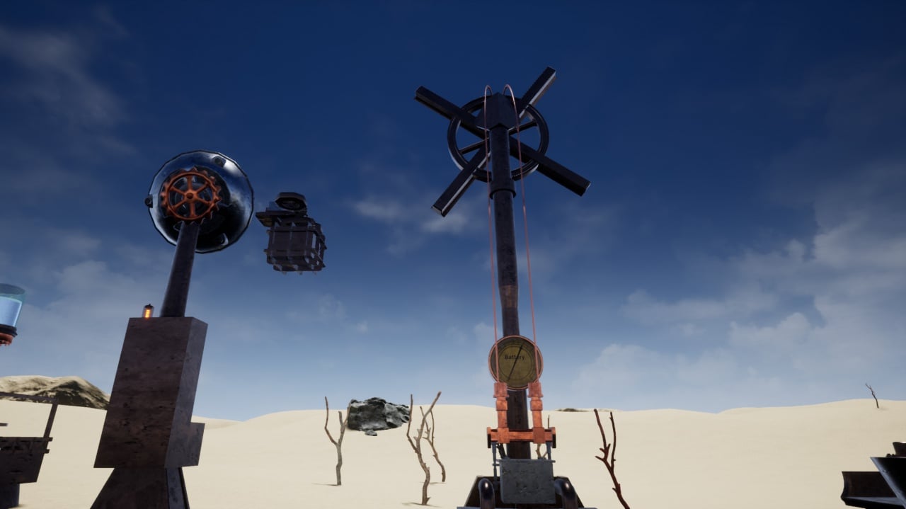 Чтобы создавать новые вещи, необходимо прокачать навыки в химии, научиться плавить руду, выдувать стекло и изготавливать взрывчатку. Редкие чертежи помогут проектировать автономных дронов и статические башни, способные защитить территорию. Необычные события в жизни протагониста начинаются с крушения дирижабля в пустыне. Он сразу осознает, что вокруг нет питьевой воды, а враги готовы разорвать его на части.