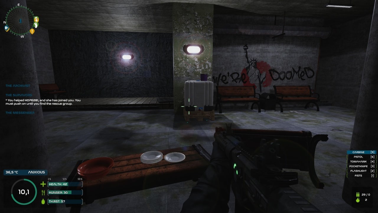 Геймплей включает механики выживания. Исследуйте мир, собирайте ресурсы, охотьтесь, разжигайте огонь и следите за своим состоянием. Протагонист имеет показатель психологического состояния, за которым нужно следить. Доступен обширный инвентарь и лагерь для хранения запасов.