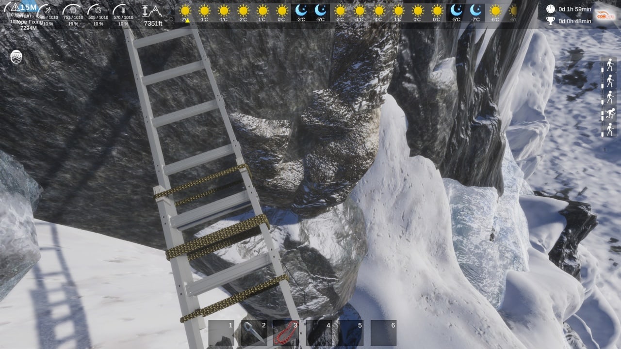 На пути к вершине необходимо укреплять канаты, использовать альпинистские кошки, карабины и ледорубы. Метели и лавины представляют постоянную угрозу. Перед началом восхождения стоит изучить маршрут и спланировать путь. В Climber: Sky is the Limit важно правильно выбирать время для старта, чтобы повысить шансы на успех.