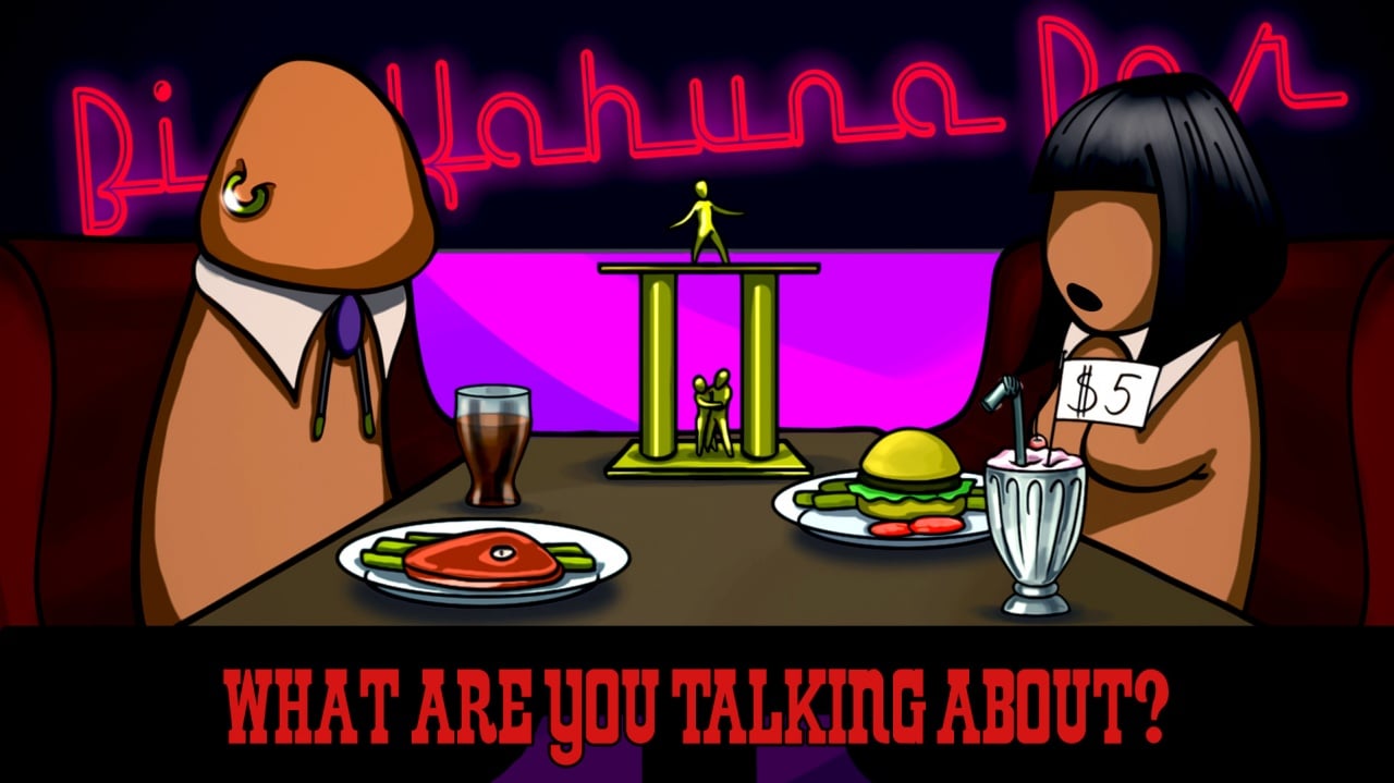 COCKHEAD: BIG KAHUNA BAR — это приключенческая визуальная новелла, черпающая вдохновение из творчества Квентина Тарантино. События разворачиваются в баре Биг Кахуна, расположенном на границе Мексики. Главные герои — это причудливые членоподобные персонажи, что придаёт проекту особый колорит. В игре присутствуют отсылки и даже целые сцены из культовых фильмов режиссера.