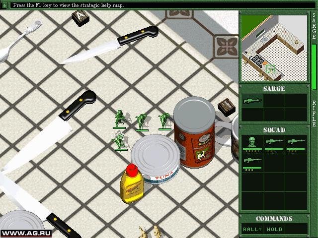 В вашем распоряжении мощное игрушечное оружие, способное превращать противников в динамит или увеличительное стекло. Управляйте наземной пехотой и тремя типами техники: лодками, джипами и танками. Сражайтесь на кухне, во дворе, в гараже и других участках обычного дома. Станьте сержантом и ведите свои войска к победе. Устройте настоящее пластиковое побоище!