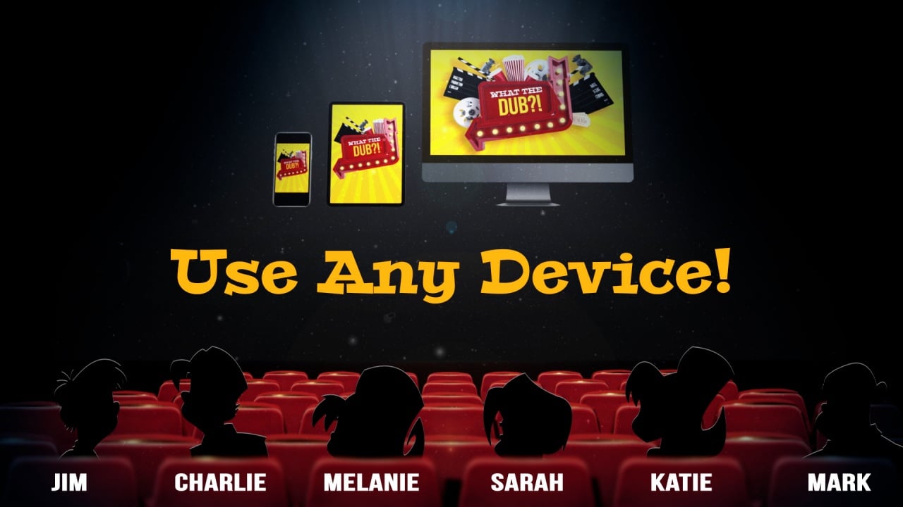 What The Dub?! – это многопользовательский тайтл, идеально подходящий для вечеринок и весёлого времяпрепровождения в компании. В одной сессии могут участвовать от 3 до 12 пользователей. Геймеры накладывают отсутствующие диалоги на фрагменты фильмов ужасов, известных реклам или странных индустриальных роликов, используя остроумные или абсурдные дубляжи.