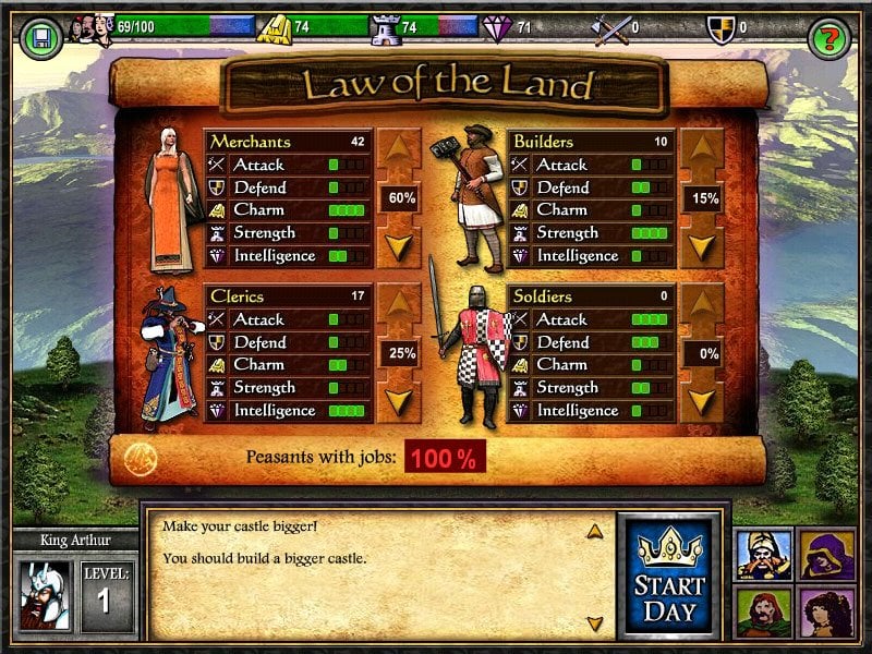Только новый правитель может восстановить равновесие в этом мире. Геймерам доступны 5 уникальных лидеров, каждый из которых обладает своими сильными и слабыми сторонами. Выберите своего героя и отправляйтесь на поле боя, чтобы положить конец многолетней войне! Персонажи могут быть назначены на 4 уникальные профессии, каждая из которых предоставляет особые бонусы и навыки. Королевство разделено на 17 локаций, каждая из которых населена разнообразными врагами. Задача - изгнать потусторонние силы с этих территорий. Не забудьте посетить Магазин старого волшебника, чтобы приобрести магические артефакты, которые помогут в битве.