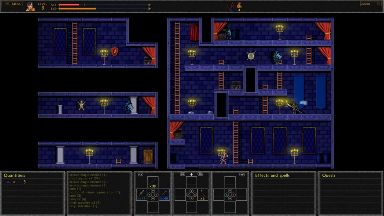 На пути встретятся разнообразные монстры и враждебные существа. Замок, в котором разворачивается действие, представляет собой сложный лабиринт, выполненный в стиле метроидвании. За спиной героев таится загадочный темный дух, который не может напрямую воздействовать на Дэниела. Ему нельзя умирать, иначе дух обретет свободу. Задача — победить Харнакона, владельца поместья, чтобы освободить запертые души. Особенности геймплея UnEpic: