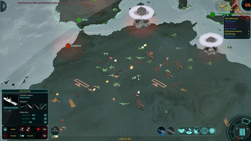 Пользователи развиваются параллельно, стараясь опередить врага в количестве вооружения. Захватывайте территории на континентах, насаждая свою идеологию. Развивайте ядерный потенциал, стройте базы и готовьтесь к первому удару или создавайте системы для отражения атак противника. Игра продолжается, пока один из участников не исчезнет с карты мира.
