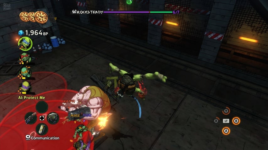 Teenage Mutant Ninja Turtles Mutants in Manhattan — кооперативный экшен, позволяющий геймерам объединиться в борьбе с врагами. Пригласите друга в онлайн, или подключитесь локально. Проходите кампанию вдвоем или вчетвером, используя открытое оружие, костюмы и персонажей. Этот тайтл предлагает захватывающий хак-н-слэш, где можно взять под контроль одного из четырех легендарных черепашек: Леонардо, Рафаэля, Микеланджело и Донателло.