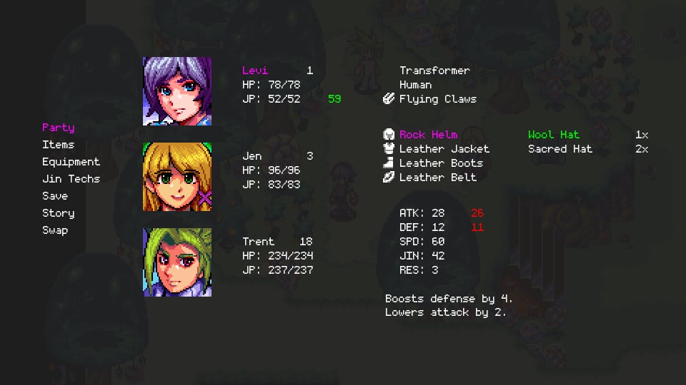 - Бои проходят на тех же полях, где перемещается протагонист. Экран не переключается перед началом сражения.