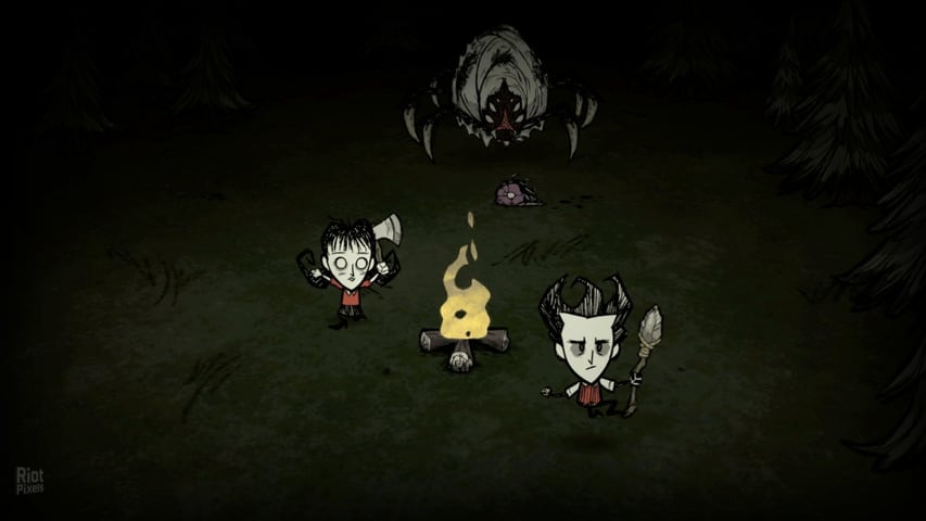 Don't Starve Together — это суровый симулятор выживания в открытом мире, где геймеры могут объединить усилия с другом для совместной борьбы, фарма, строительства и исследования процедурно генерируемых локаций. На просторах дикой природы, где ночь приносит кровожадных монстров, важно помнить: огонь — ваше лучшее оружие. Факел или костер способны остановить ночных врагов.