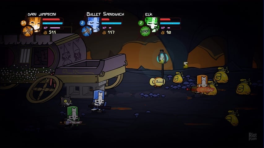 В Castle Crashers геймеры могут объединяться в сети с друзьями, чтобы пройти сюжетную кампанию или бросить вызов другим в онлайн-режиме. Это двумерный бит-эм-ап, в котором храбрые рыцари сражаются против злого колдуна. На пиратке доступен обширный арсенал оружия и заклинаний. Сетевая игра предлагает динамическую сложность, где враги становятся сильнее и агрессивнее с каждым уровнем. Пользователи могут использовать 25 видов спеллов и 79 типов вооружения. За уничтожение врагов начисляются очки опыта, что позволяет повышать уровень героя.