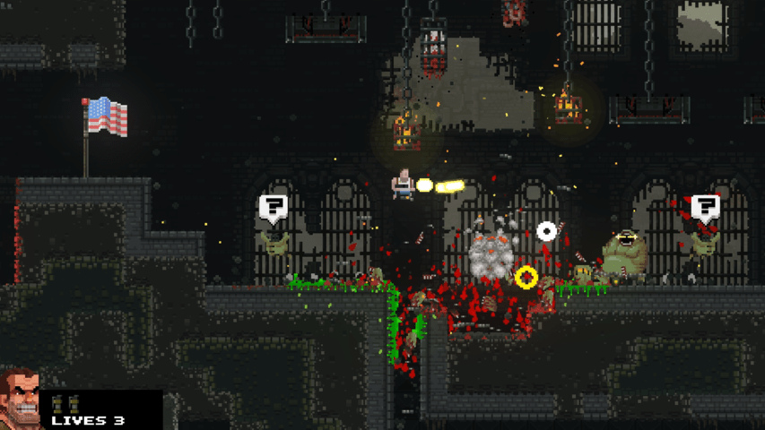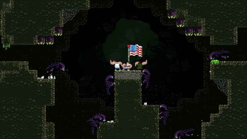 Тактические приемы впечатляют. Вы можете выманивать врагов на мост, который можно поджечь. Некоторые герои владеют акробатическими трюками, позволяющими высокие прыжки и отталкивание от стен. Игра отличается хардкорной сложностью. Протагонисты Broforce умирают от одного попадания. Для возрождения на уровне нужно собирать специальные флаги. Мультиплеер поддерживает до четырех игроков. Можно играть по сети или в локалке. В кооперативном режиме братья не погибают — их можно спасти из плена, тщательно обыскав уровень. Если все персонажи падут, придется начинать с самого начала.