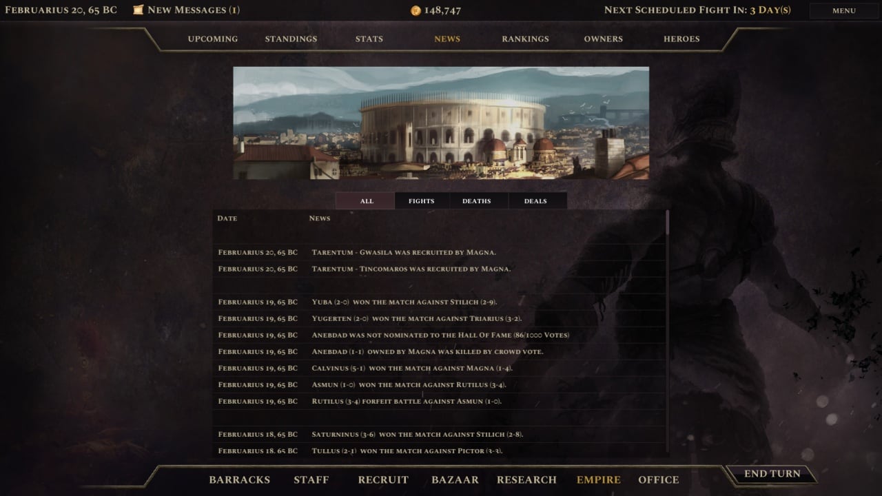 Age of Gladiators 2: Rome — стратегия, погружающая в мир гладиаторских боев Древнего Рима. Нанимайте разведчиков для исследовательских миссий. Вербование могучих гладиаторов требует внимания к их моральному духу и тщательной подготовки к жестоким поединкам в Колизее. Улучшайте школу гладиаторов, нанимая разнообразный персонал. Выполняйте побочные задания для увеличения репутации и популярности заведения.