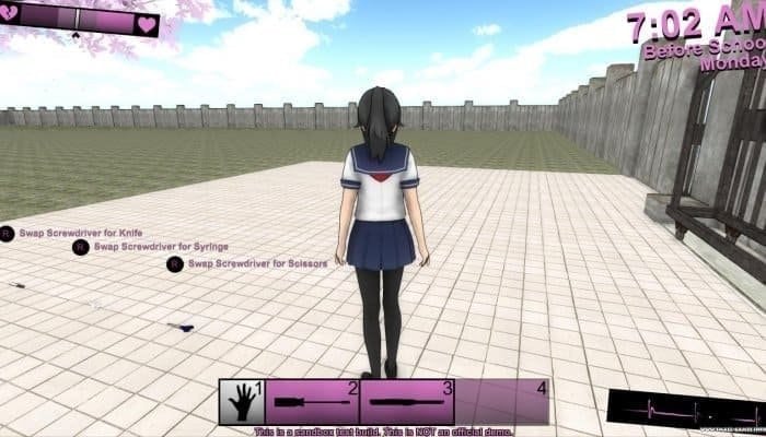 Центром событий в Yandere Simulator становится «Akademi High School». Здесь вы возьмете на себя роль яндэрэ-тян — Аяно Айси, чья страсть перерастает в опасную одержимость. Ради любви к Таро Ямаде, она готова на всё. Каждую неделю в сэмпая влюбляются другие ученицы, и у них есть 5 дней, чтобы признаться в чувствах. В пятницу они подойдут к нему, а ваша задача — устранить соперниц. Первая в списке — Осана Надзими.