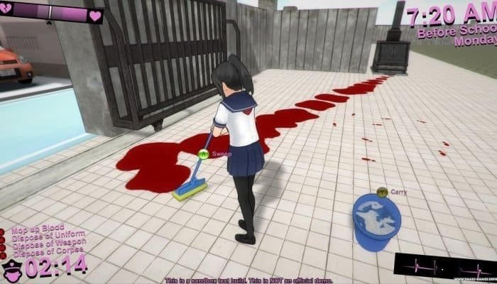Не злоупотребляйте нахождением рядом с объектом обожания. Аяно начинает стесняться, экран окрашивается в розовый, она теряет оружие и ведет себя непредсказуемо. Если Таро увидит вас в таком состоянии несколько раз, это приведет к провалу. Информационная брокерша, скрывающая свое имя, будет предоставлять вам оружие и данные о целях в обмен на необычную валюту — фотографии трусиков. Другие ученики предложат побочные квесты, которые помогут вам собрать нужное снаряжение и фотографии для продвижения по сюжету. Также в наличии «режим миссии» — станьте наемным ассасином в знакомых декорациях, но без сэмпая и сражений за него.