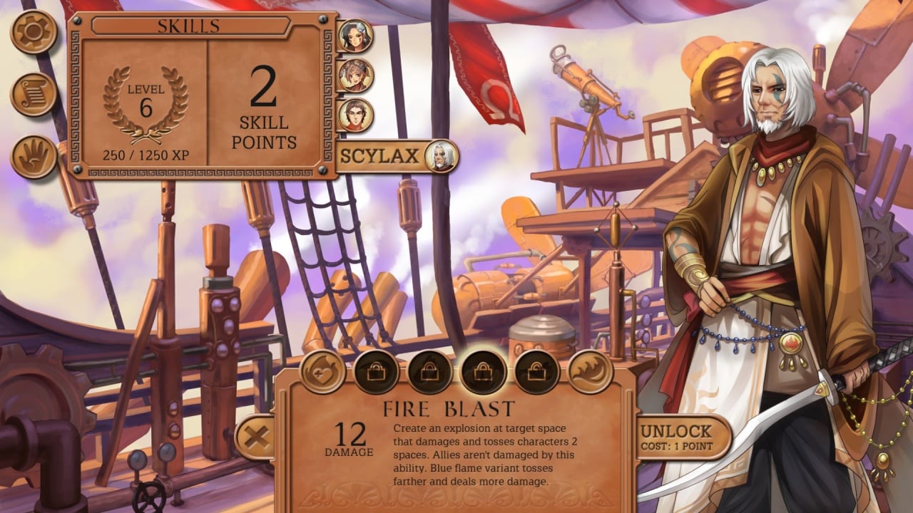 Бой полон головоломок. Тактические механики в сочетании с возможностями манипуляции на поле битвы. Сбивайте врагов со скал, подбрасывайте союзников в безопасные места и бейте бочками по головам ничего не подозревающих гарпий. Промышленная революция изменила культуру Древней Греции. Путешествуйте от луддитов, угрожающих афинской демократии, до великой железной дороги Фив.