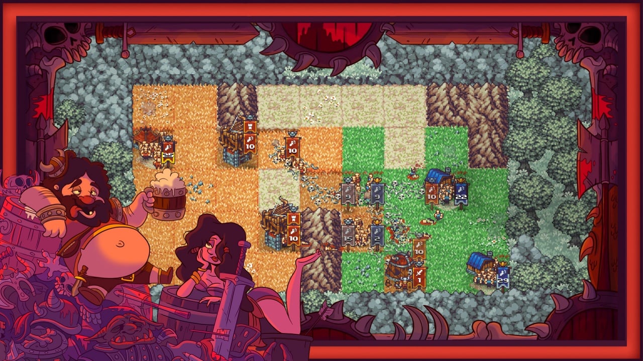 Crush Your Enemies предлагает геймерам уникальную возможность сразиться с друзьями в классическом стратегическом противостоянии. Можно играть онлайн или на одном экране. Механика тайтла включает в себя развитие базы, обучение юнитов, управление ресурсами и захват вражеских селений. Действие происходит в мире Типичия, населённом злобными варварами, жаждущими крови, пива и ругани.