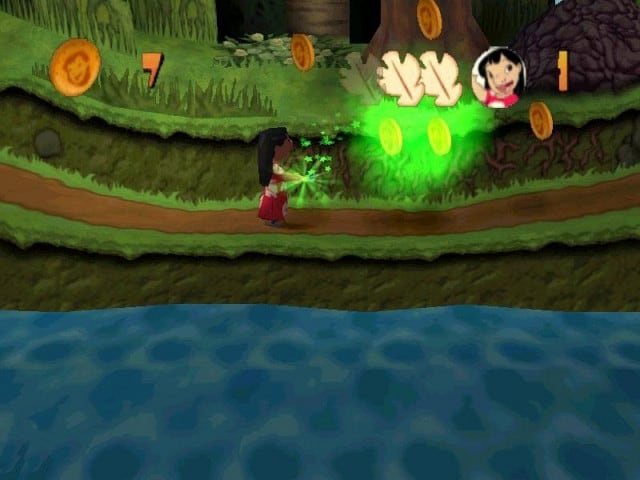 Мир игры представлен в трехмерном формате. Здесь вы встретите множество преград, платформ, бонусов, монет и оппонентов. Для продвижения необходимо пересекать движущиеся островки и избегать опасных участков. На некоторых уровнях требуется собрать определённые предметы, такие как фотографии, устройства связи или виниловые пластинки, чтобы открыть доступ к следующим территориям. Временами Лило и Стич будут убегать от Мертла Эдмондса на её трехколесном велосипеде.