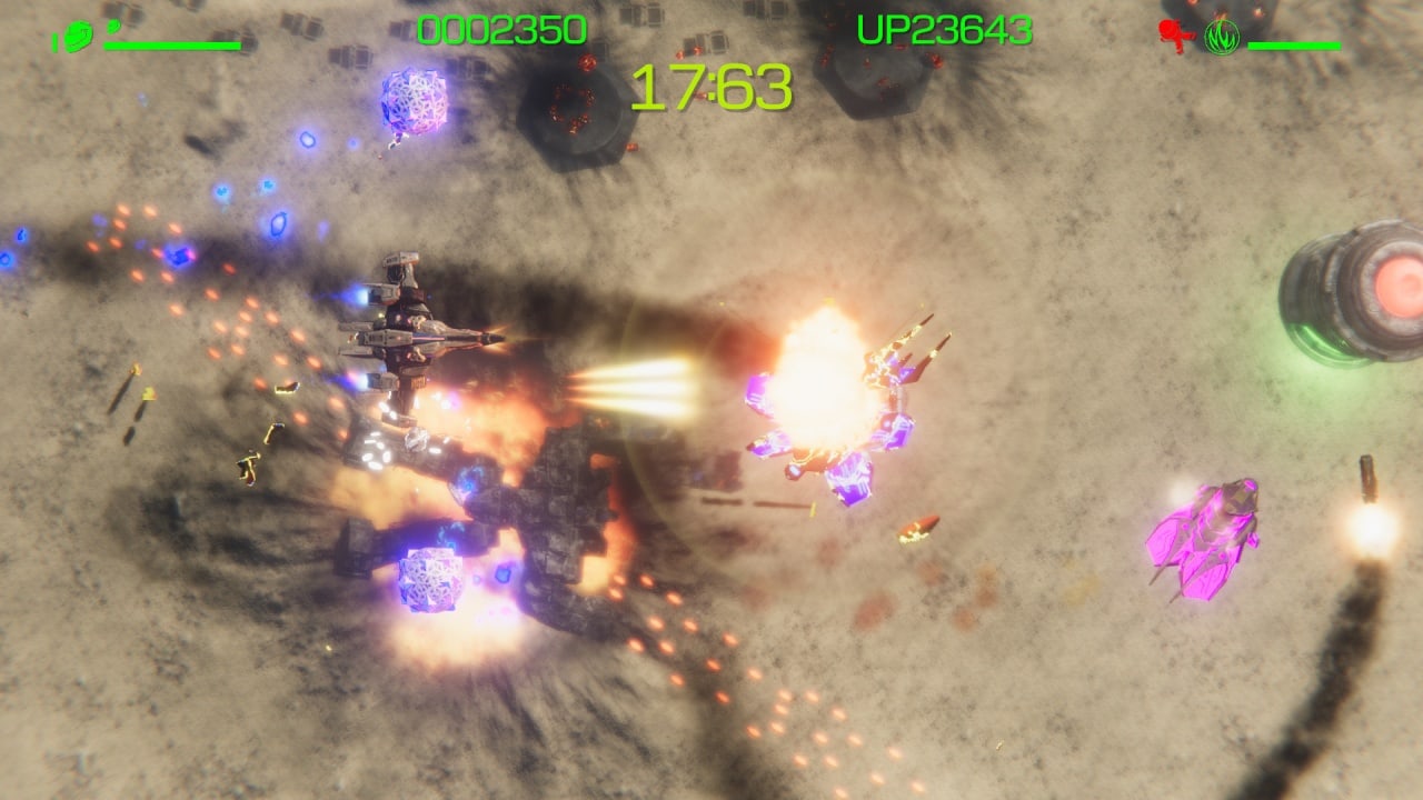 Арсенал включает около 20 видов вооружения: пулеметы, ракеты, лазеры и дронов-помощников. Для разблокировки всех типов оружия нужно проходить специальные испытания. Также можно открывать улучшения для своего судна. Оружейная комната позволяет кастомизировать и модернизировать вооружение. Разработчики предусмотрели разные уровни сложности, предлагая три основных режима: сюжетную кампанию, "Аркаду" и режим, в котором геймеры могут соревноваться за место в таблице лидеров. Сетевой мультиплеер отсутствует, но можно состязаться с другими пользователями в наборе очков и позициях в глобальном онлайн-рейтинге.