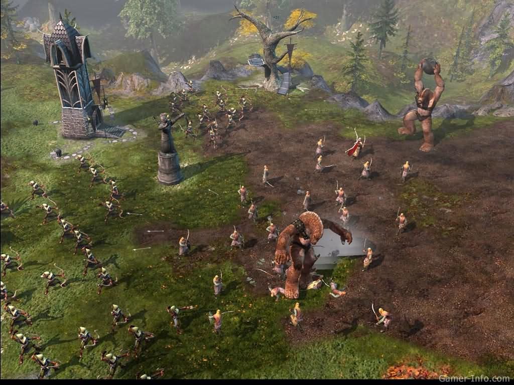 HUD называется Палантир. Войска делятся на пехоту, дистанционных бойцов, копейщиков, кавалерию и осадных солдат. Среди героев — Арагорн, Леголас, Гимли, Саруман, Арвен, Шелоб и другие. Каждый персонаж имеет свои уникальные способности. В проекте появляется Кольцо Всевластия, способное вызывать Гадриэля или Саурона.