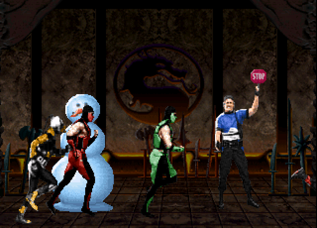 Если на локации Dead Pool сделать Stage Fatality, а затем нажать Вниз, то услышите, как Дэн Форден скажет: "Oooh". На арене Kombat Tomb, сделав Stage Fatality, оба игрока зажмут Вниз, противник соскользнёт с шипов вниз.