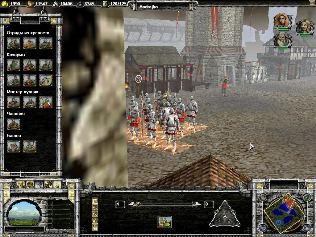 Строения включают казармы, кузницы, дома каменщиков, лесорубов и рудокопов. Золото — основной денежный ресурс, который можно получать через налоги или продажу пива в таверне. Отряды имеют три типа боевых стоек: атакующую, защитную и маршевую. Солдаты могут бегать или идти. Войска делятся на следопытов, пикинеров, рыцарей, аркебузиров, лучников и арбалетчиков, а также доступны Элитные воины, Монахи и прокаженные.