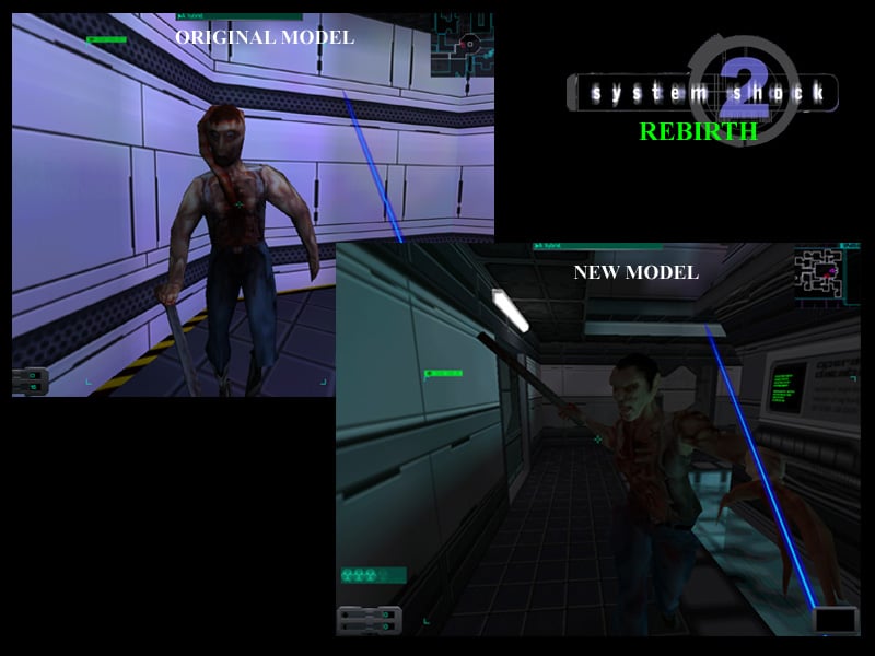 Мод Rebirth для System Shock 2 вдыхает новую жизнь в культовый тайтл. Графика претерпевает радикальные изменения: модели объектов заменяются более детализированными аналогами с высоким количеством полигонов. Текстуры здесь также становятся более проработанными. Этот проект, известный также как SS2 CyberBlutch Rebirth 05, кардинально меняет восприятие игры. Анимации врагов переработаны, они теперь движутся реалистичнее и атакуют убедительнее. Геймплей остается неизменным.