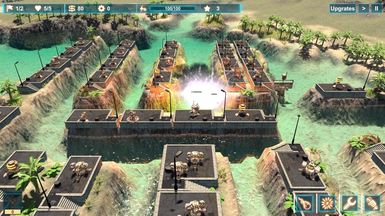 Геймеру нужно отбивать один город за другим, раз за разом нанося удары по передовым силам врага. Для этого необходимо стратегически размещать защитные башни, создавая коридоры из турелей, чтобы не дать пришельцам шанса добраться до центров городов. Умелая тактика и грамотное расположение построек — залог успеха. В распоряжении доступны различные виды башен, каждая из которых обладает уникальными характеристиками и вооружением. Комбинирование турелей усиливает их свойства, повышая скорострельность и максимальный урон. Все турели подлежат улучшению, которое осуществляется за счет очков опыта, получаемых за уничтожение инопланетян.