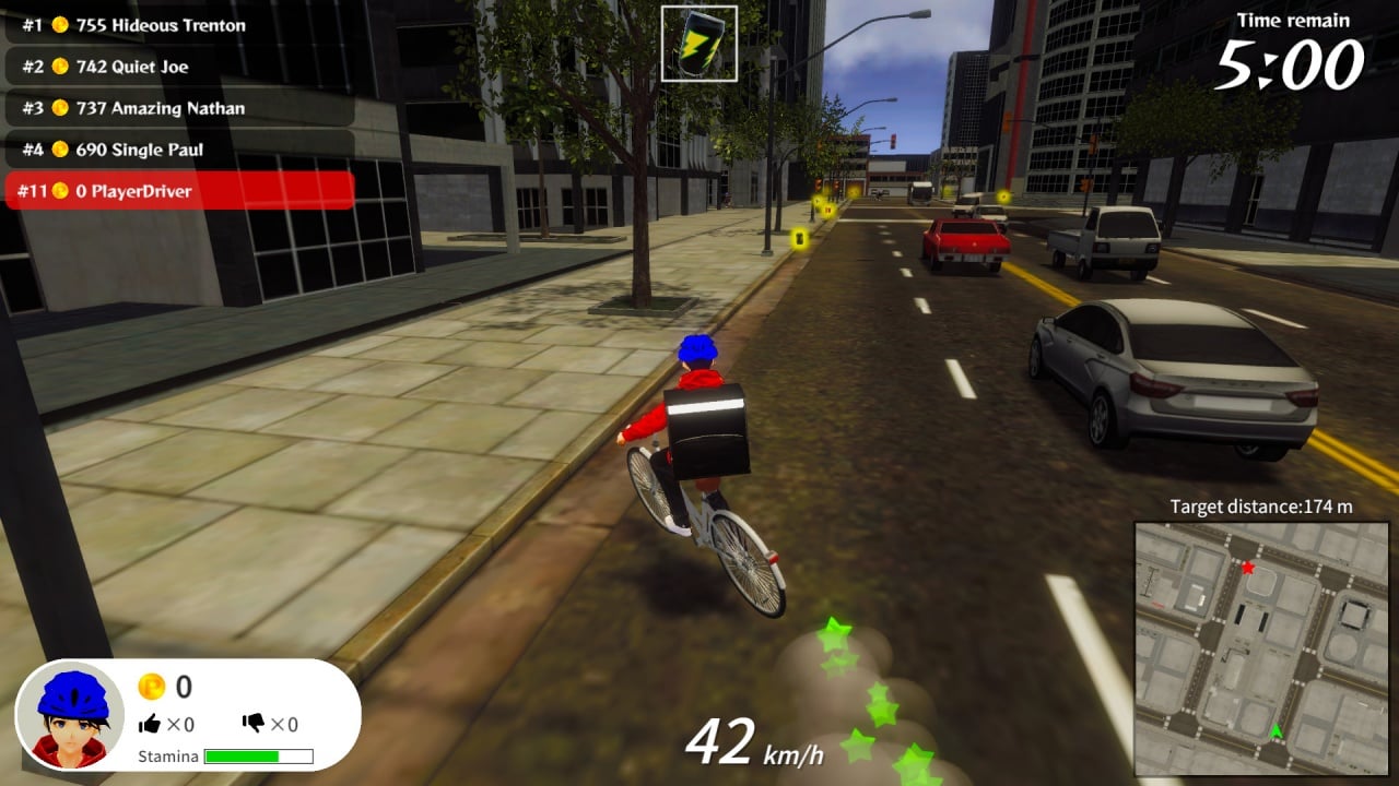 Каждый персонаж обладает особыми способностями. Бонусы разбросаны по улицам, как и деньги. Собранные предметы помогут помешать оппонентам. Большинство способностей уникальны: отталкивайте ближайших врагов с помощью мощных воздушных волн или ускоряйтесь благодаря найденным ракетам. Чтобы выполнить заказ, необходимо остановиться на несколько секунд внутри желтого квадрата. Интерфейс показывает оставшееся время и мини-карту, на которой отмечены другие участники и их маршруты.