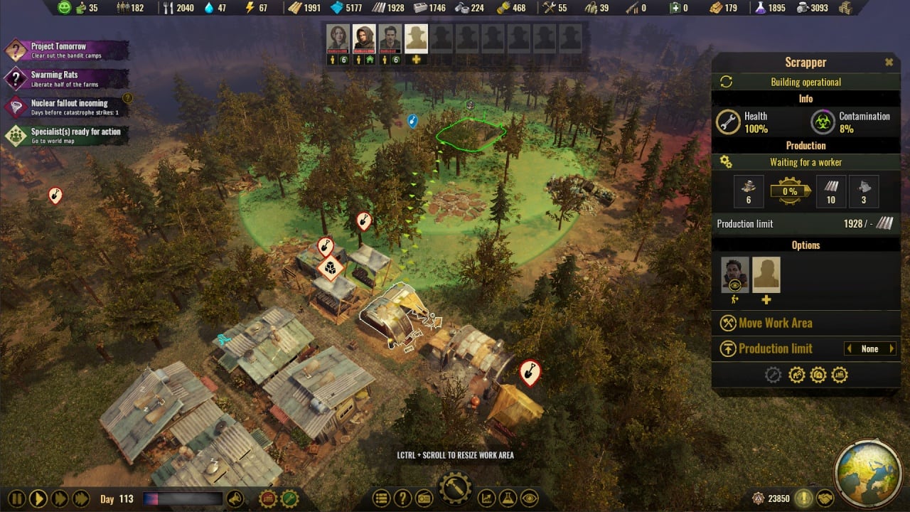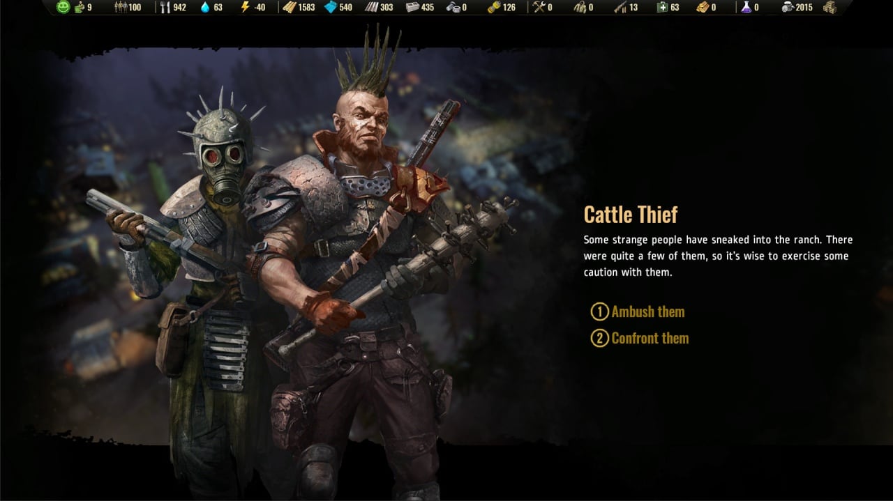 Путешествуя по миру, вы столкнетесь с бандитами или другими поселениями. Защищайте свои владения от нападений, прокачивайте персонажей. Находите улучшенное оружие, крафтите экипировку и повышайте способности своих подопечных. Принимайте сложные решения для формирования характера своей цивилизации. Занимайтесь строительством, отправляйте специалистов на исследование новых земель, добывайте ресурсы, сражайтесь с врагами и делайте все возможное для выживания в опасном мире. Спаситесь от множества стихийных бедствий. Каждый биом предлагает уникальные погодные условия, которые могут как помочь, так и навредить вашему выживанию.