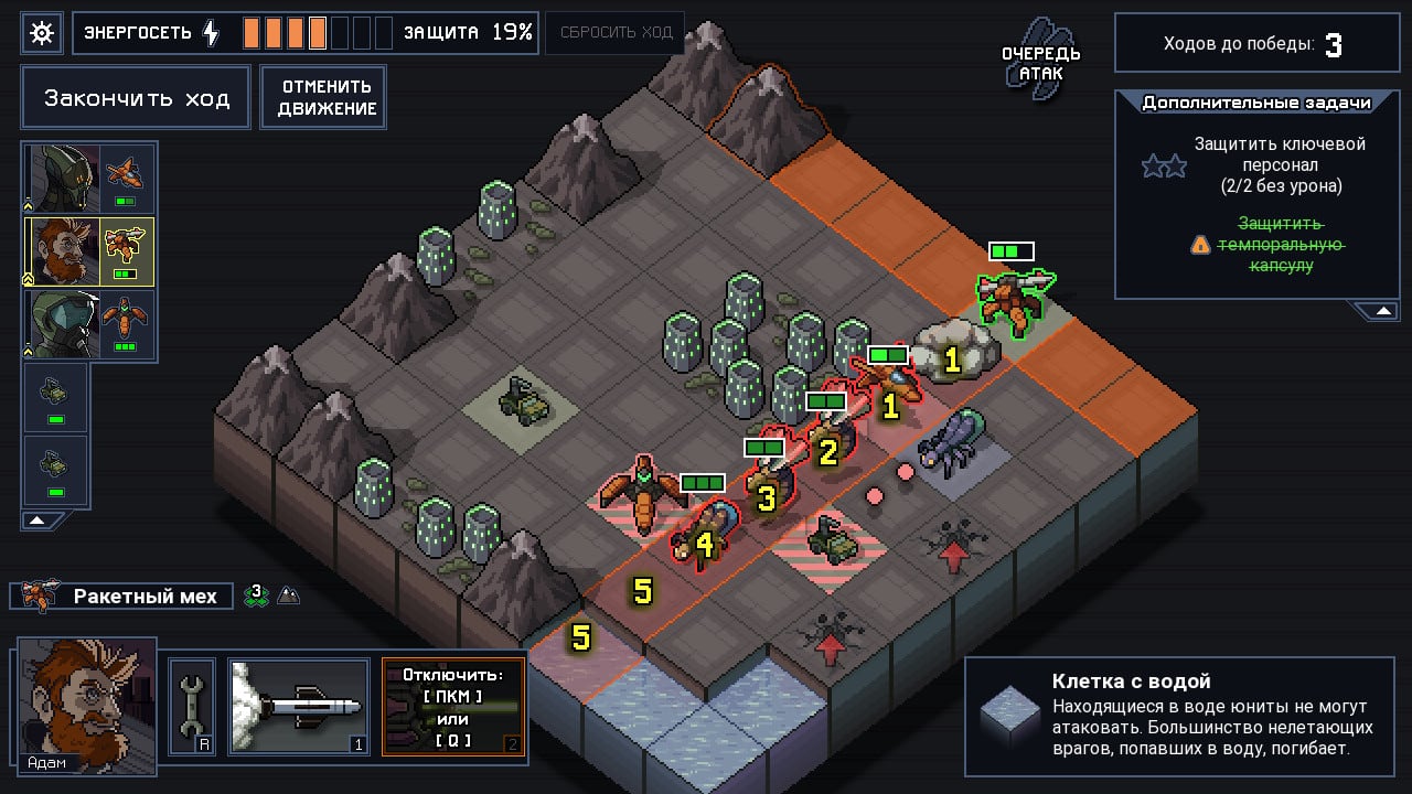 Стратегия в жанре RTS про мехов, защищающих города - Into the Breach — достойный представитель своего рода, отражающий борьбу с монстрами-кайдзю, угрожающими мегаполисам. Геймеру предлагается выбрать из нескольких мехов в начале раунда, каждый из которых вступает в бой на «шахматной доске» — поле сражений. Кайдзю неустанно атакуют, а ваши машины должны защищать поселения и спасать жителей. Разработчики позаботились о множестве уникальных роботов, каждый из которых может быть модернизирован.