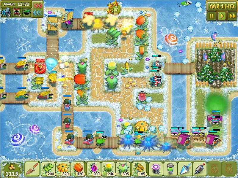 Пока жуки готовят нападение, стройте защитные башни и собирайте личное войско. На локациях Garden Rescue New Year разбросаны бонусы, способствующие получению новых трофеев и способностей. Защитники сада: Новогодний переполох радует зимним и праздничным антуражем. Механики башенной защиты просты и казуальны, что позволяет наслаждаться игрой всей семьей.