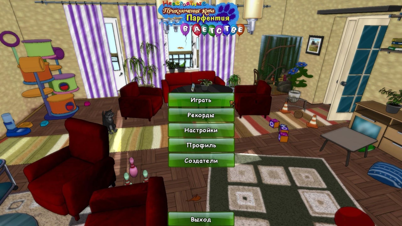 Невероятные приключения кота Парфентия в детстве - это аркадный проект о непростой судьбе уличного котенка, которого приютила обычная семья. Оказавшись без матери, герой находит в домашних условиях шанс выжить. Но его ждёт множество открытий, ведь он должен сам понять, что значит быть котом. Вместе с пользователями Парфентий научится ходить, прыгать, лазить, чуять запахи, распознавать врагов, заводить друзей и многое другое.