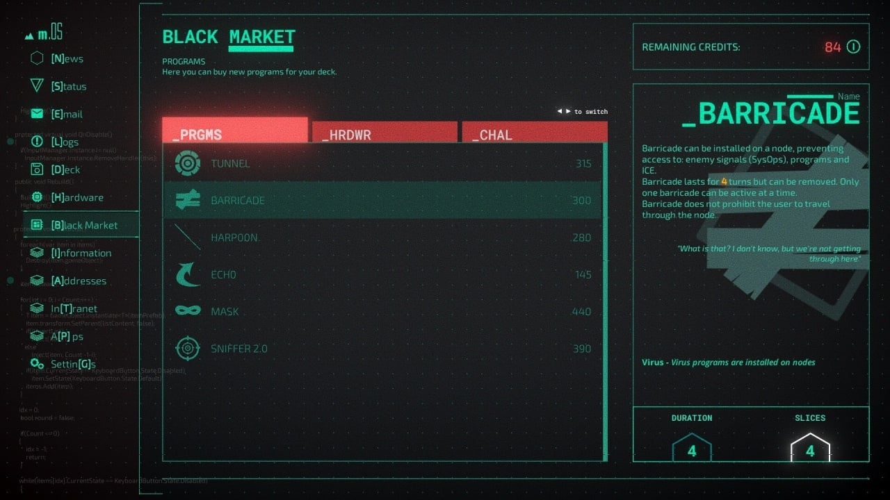 Проект предлагает уровни в цифровом пространстве, наполненные пошаговыми головоломками и задачами, необходимыми для обхода защиты программного обеспечения. Геймерам придется следить за новинками черного рынка и инвестировать в улучшенное ПО, чтобы успешно вскрывать сложные пароли и выполнять серьезные задания, возложенные на героя.