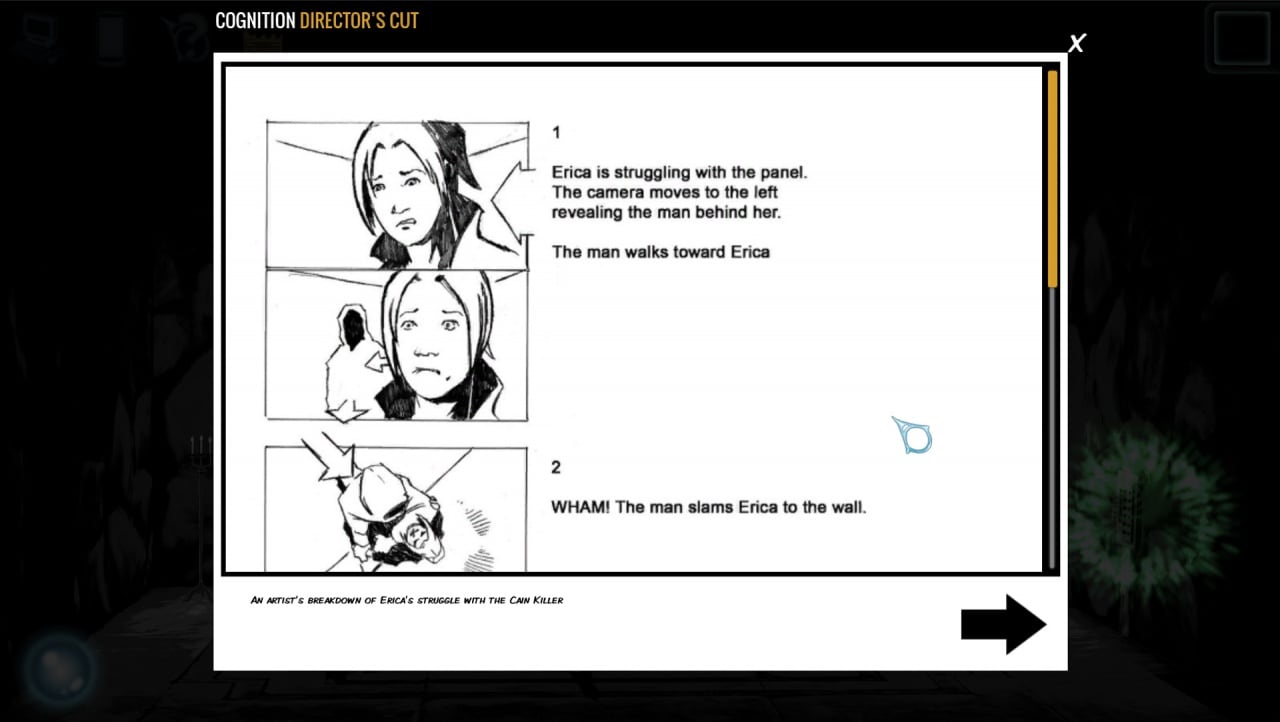 Сюжет Cognition: An Erica Reed Thriller разворачивается после трагического инцидента в жизни Эрики. Её уникальные способности не смогли спасти брата от серийного убийцы. Спустя годы, когда официальное расследование завершилось, Эрика решает взять дело в свои руки. Вам предстоит пройти 4 акта, в каждом из которых героине предстоит столкнуться с демонами своего прошлого. Серийный убийца брата до сих пор на свободе. В Бостоне кто-то оставляет подсказки, которые может собрать только она. Эпизоды геймлейной истории Эрики Рид:
