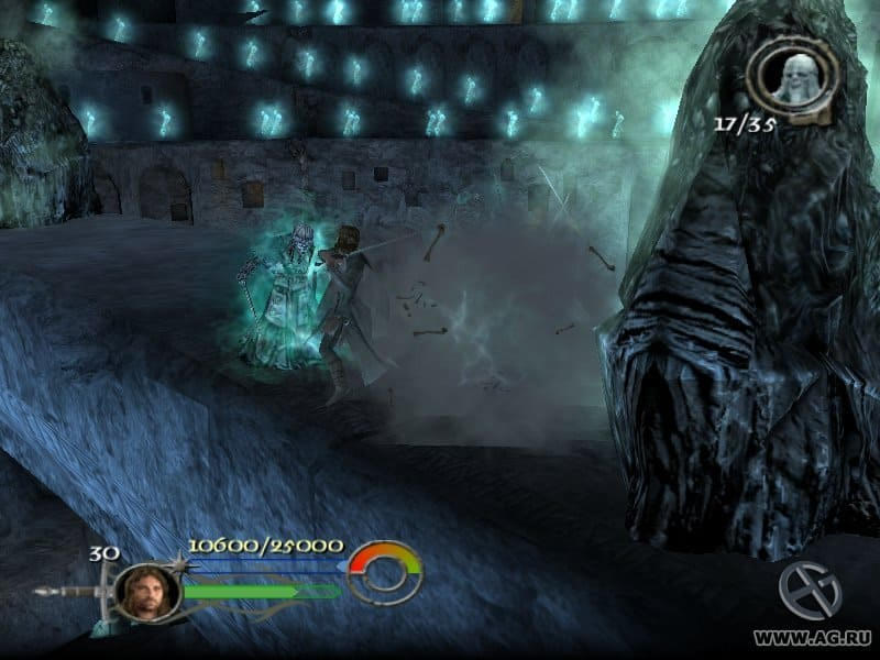 Lord of The Rings: The Return of the King – это захватывающий экшен в жанре hack and slash, основанный на событиях 2 и 3 частей культовой саги "Властелин колец". Сюжет в основном повторяет киноповествование, но адаптирует некоторые сцены под формат видеоигры. Действие разворачивается во время битвы за Хорнбург, куда армия Урук-хай пробирается через внешние стены. В этот критический момент появляется Гэндальф, и именно за него берёт управление пользователь, сражаясь с захватчиками. Узнайте, как будет развиваться эта захватывающая история и достигните яркого финала.
