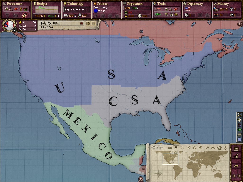 Victoria 2: A House Divided — первое дополнение к стратегическому тайтлу, погружающему в вихрь гражданской войны в США. Ваша задача — провести нацию от монархии XIX века к статусу Великой Державы XX века.