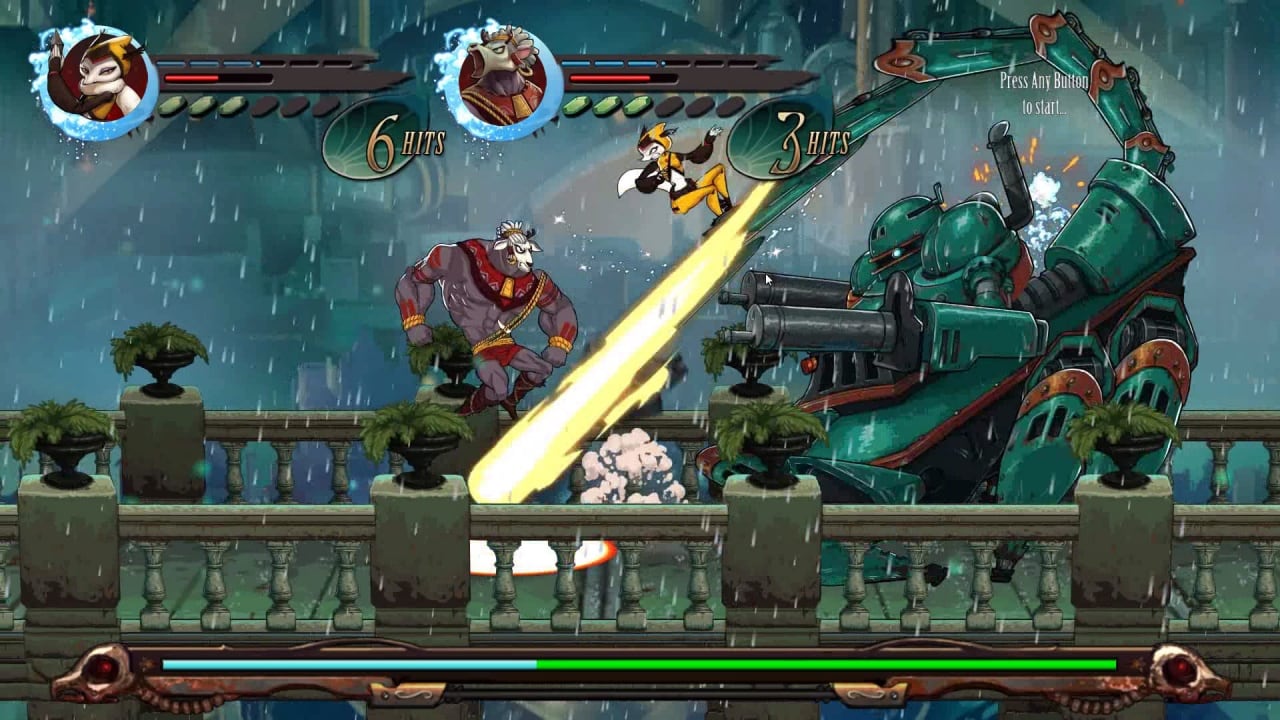 Главные герои в поисках Железного Рыцаря сталкиваются с обычными врагами и боссами после каждого уровня. Боевые навыки развиваются в зависимости от уровня персонажа. Каждый герой имеет уникальную боевую систему и два комбо-удара. Доступно семь опций для прокачки. Играть можно как в одиночку, так и в кооперативе, выбирая одного из животных.