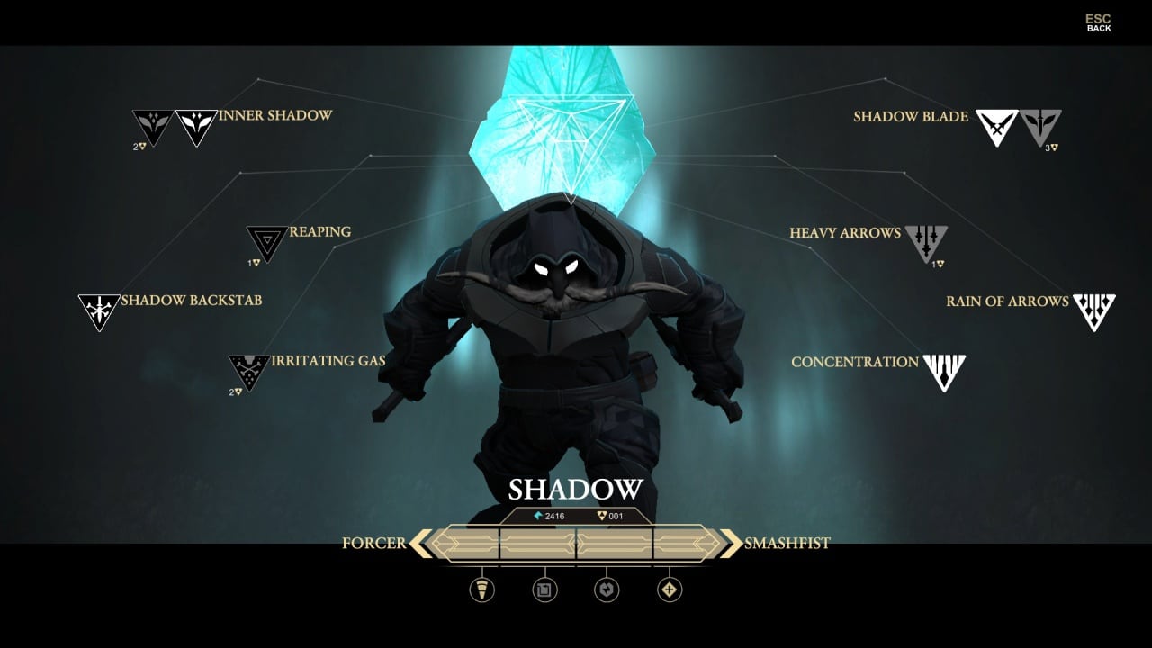 - Shadow – убийца, обладающий навыками скрытности. Он устраняет врагов, оставаясь незамеченным, и не оставляет следов после расправы.
